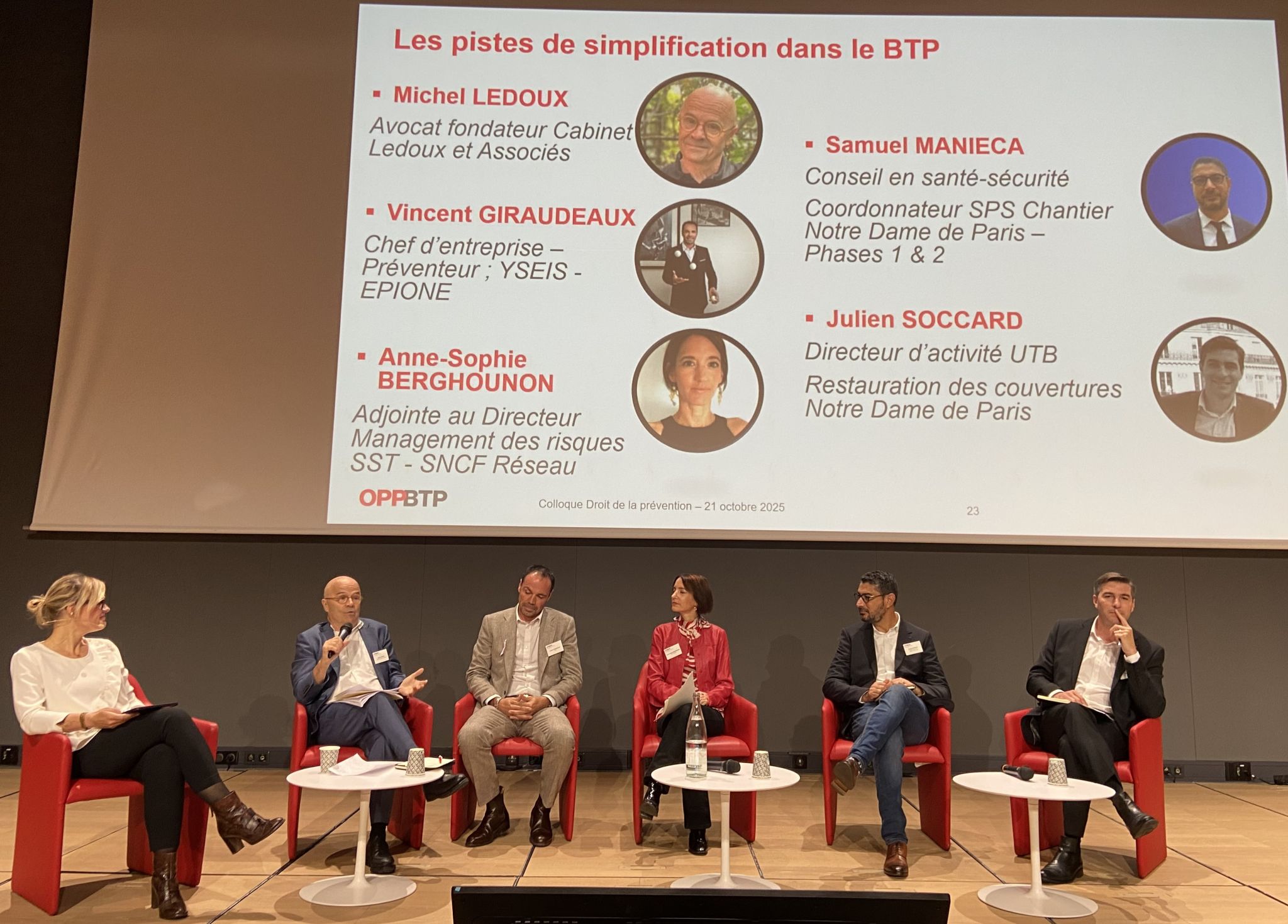 L’OPPBTP a réuni, le 21 octobre, les acteurs du BTP, du droit, et de la santé-sécurité au travail lors d’un colloque consacré au “Droit de la prévention”, afin d’aborder un enjeu majeur : la simplification du droit au service de la prévention.