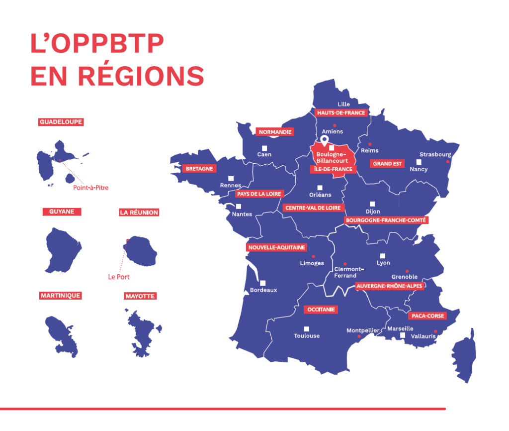 L’OPPBTP est composé de plus de 400 collaborateurs, répartis dans 14 agences régionales, qui agissent dans différents domaines d’expertise : la formation, le conseil, l’information, l’ingénierie… Experts, disponibles et réactifs, les collaborateurs de l’OPPBTP accompagnent les entreprises pour développer leur culture prévention en mettant en place des actions collectives ciblées et individuelles.